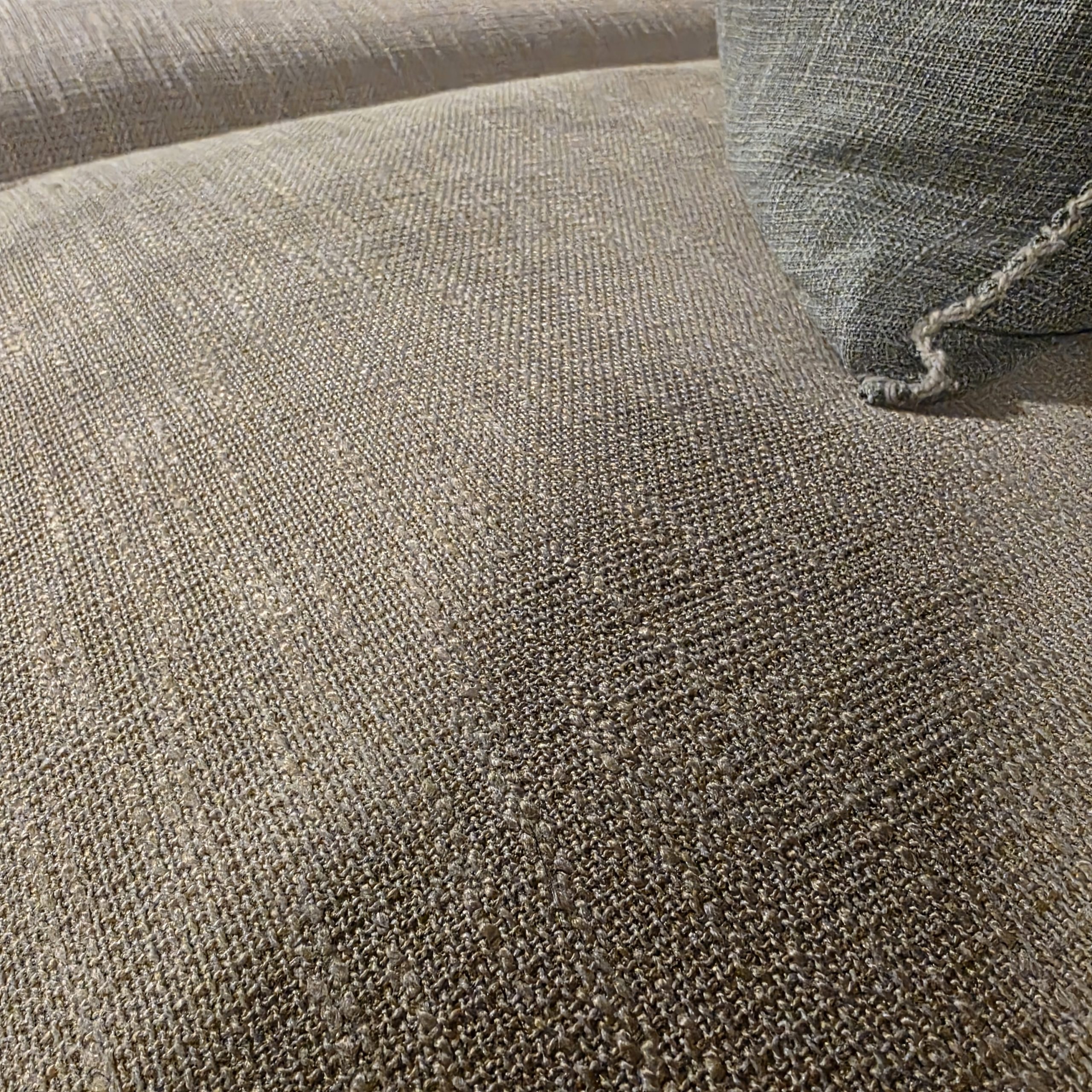 Havertys three‑seat skirted sofa in a warm neutral fabric, with classic rolled arms and a tailored full skirt that gives it a cozy, traditional look. The cushions are comfy and supportive, and the textured upholstery hides everyday wear well while still feeling soft to the touch. It seats three adults comfortably and works great in a family room, farmhouse‑style space, or anyone wanting a timeless, homey sofa that goes with almost any color scheme.